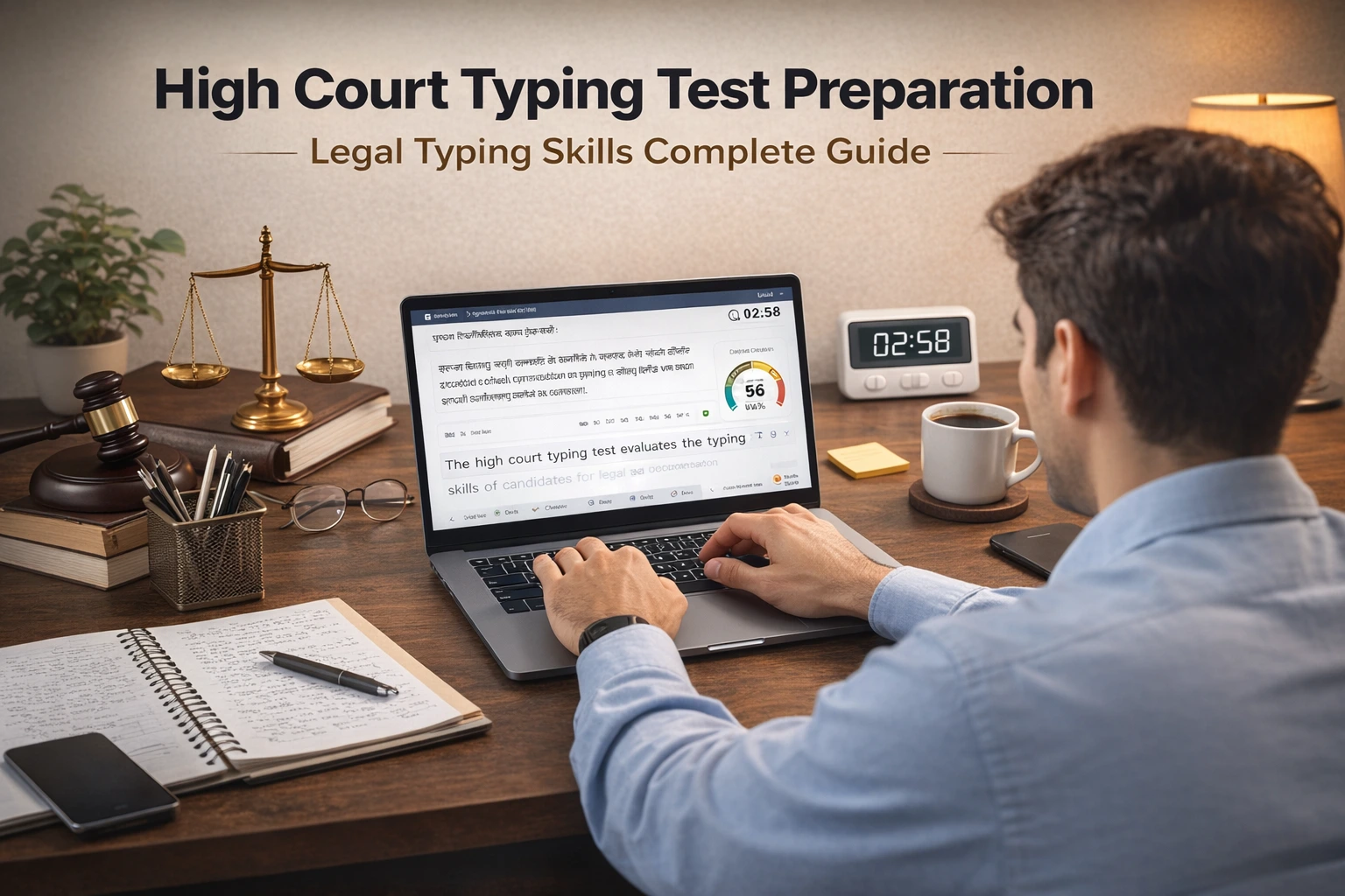 High Court stenographer और typist पदों के लिए typing test बेहद महत्वपूर्ण होता है। इस टेस्ट में English और Hindi दोनों में proficient typing required है। Court documents की typing में accuracy और speed दोनों मायने रखते हैं। Legal documents, case numbers, dates और official letters में कोई गलती गंभीर परिणाम दे सकती है। इसलिए High Court typing test की तैयारी structured और consistent practice मांगती है।