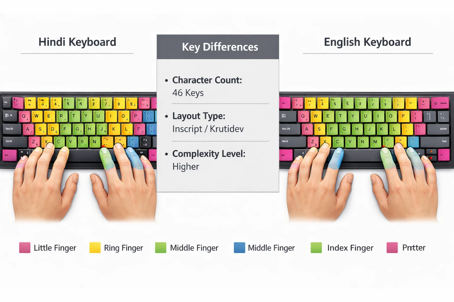 हिंदी और इंग्लिश कीबोर्ड लेआउट की साइड-बाय-साइड तुलना