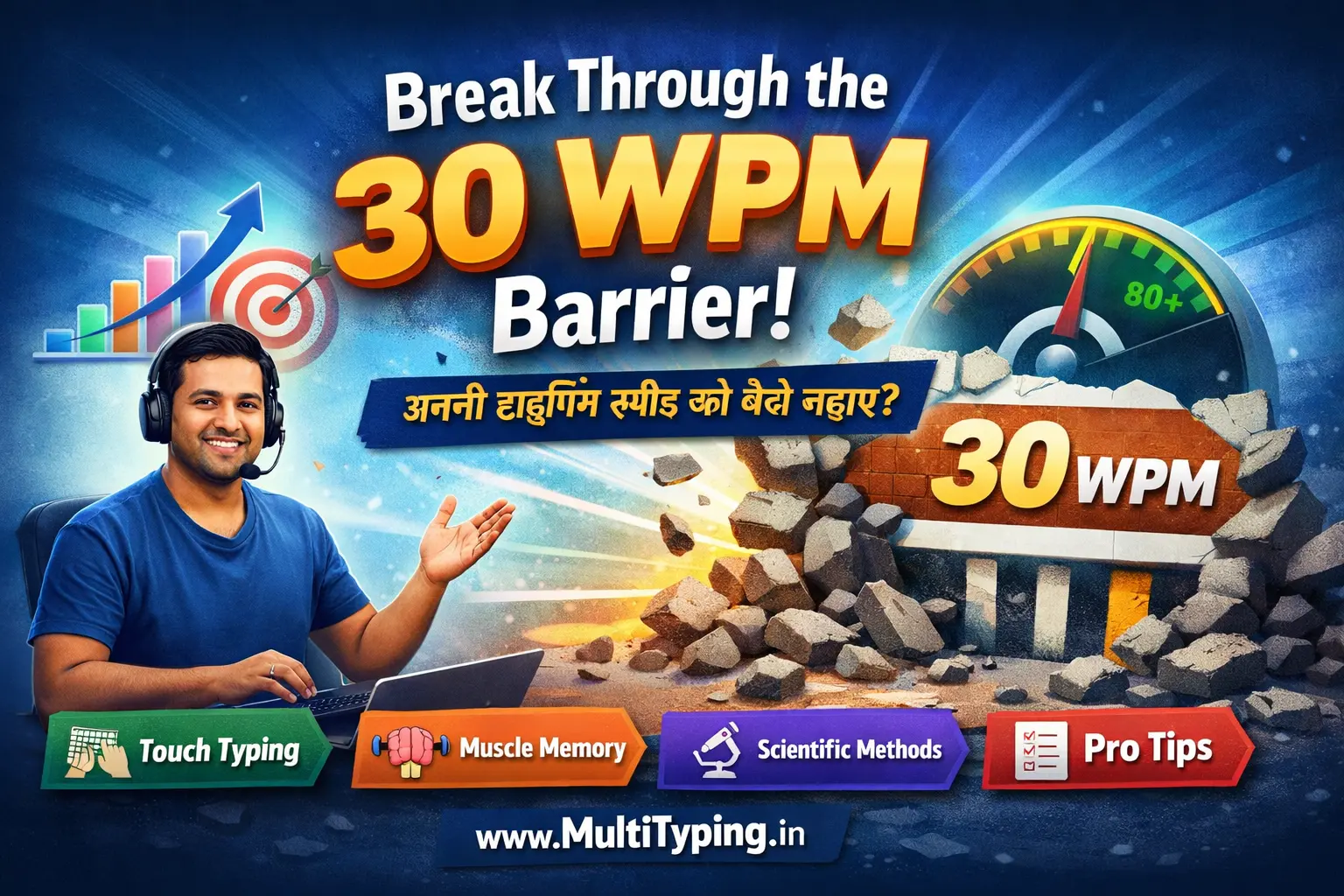 Namaste! Main Amit Kumar hoon, aur pichle 8 saalo se typing ke field mein kaam kar raha hoon. Maine hazaaron students ko dekha hai jo bilkul same problem face karte hain - wo 30 WPM par pahunch jaate hain aur phir roadblock aa jata hai. Ye situation bilkul natural hai, aur iska koi mythical reason nahi hai. Jab aap typing shuru karte hain, pehle 30 WPM tak sikhna easy hota hai kyunki basic muscle memory develop ho jaati hai. Lekin uske baad jo progress aati hai, wo scientific methods aur dedicated practice se hi aati hai, na ki sirf keyboard par hath rakhne se.
