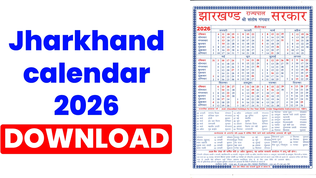 Jharkhand Calendar 2026 झारखंड राज्य सरकार द्वारा जारी किया गया आधिकारिक कैलेंडर है, जिसमें वर्ष 2026 के सभी महीनों की तिथियाँ, सप्ताह के दिन, रविवार, राजपत्रित अवकाश और राज्य स्तरीय पर्व-त्योहारों की पूरी जानकारी दी गई है। यह कैलेंडर विशेष रूप से सरकारी कर्मचारियों, प्रतियोगी परीक्षाओं की तैयारी करने वाले छात्रों, वकीलों, बैंक कर्मियों और आम नागरिकों के लिए अत्यंत उपयोगी है। झारखंड कैलेंडर 2026 में रविवार और सरकारी छुट्टियाँ लाल रंग में दर्शाई गई हैं, जिससे पूरे वर्ष की योजना बनाना आसान हो जाता है।