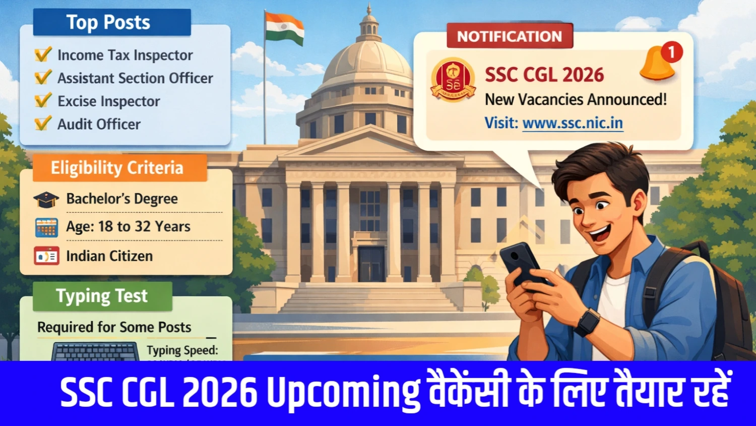 SSC CGL 2026 का Notification जल्द जारी होने वाला है। हर साल लाखों Graduates इस Exam में बैठते हैं — और इस बार भी बंपर Vacancies आने की उम्मीद है। अगर आप SSC CGL 2026 में Apply करने का Plan बना रहे हैं तो यह Blog आपके लिए है।
